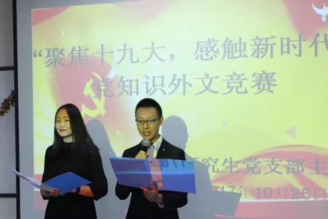 2017年10月26日下午四点,在党的十九大胜利闭幕之际,为了让青年党员们更加深刻地了解党和十九大的相关知识,米兰官网研究生党支部在文史楼224教室举办了以“聚焦十九大 感触新时代”为主题的英文知识竞赛。