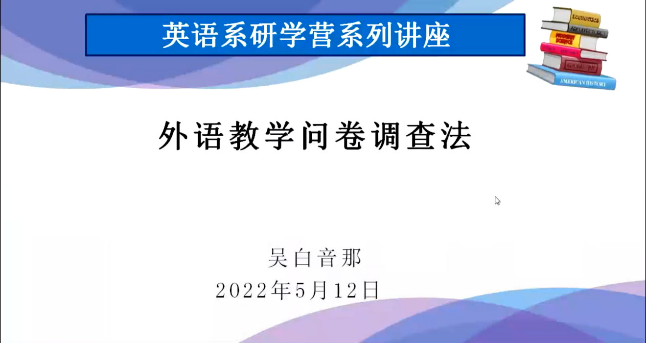 5月12日,吴白音那讲授第二讲,题目为“外语教学问卷调查法”。在本场讲座中,吴老师从问卷调查的定义、问卷格式与设计、问卷信效度测试、问卷实施和回收、以及数据统计与检验五大方面做了深入地讲解。