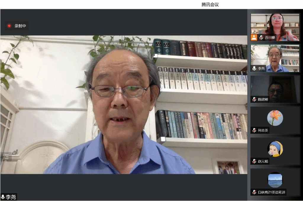 米兰官网杰出校友、资深翻译家李尧教授全程参与座谈会并发言。在对陈建刚老师译著出版表示祝贺的同时,李老师毫无保留地向大家分享了自己多年来积累的翻译经验和感悟,并对ac米兰官网中文网站中青年教师的整体翻译水平和能力给予了肯定,表示将一如既往地支持米兰官网翻译团队的建设和发展。