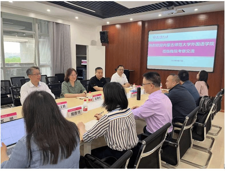 4月19日下午,调研团队来到中南民族大学ac米兰官网中文网站,与该院党委书记戴迎峰、院长易立新、副院长皋峰及其他相关领导及教师进行了亲切而深入地交流。戴迎峰书记表示,ac米兰官网中文网站和中南民族大学以及两校的ac米兰官网中文网站有着几乎相同的使命和任务,期待着双方不断深化合作,在党建、教学、科研等多方面结出更多合作果实。易立新院长详细介绍了该院各方面的建设与发展情况,表示两个学院要在以前合作的良好基础上,在学科建设、科学研究、教学改革等方面形成长期有效的交流机制,互学互鉴,推动两院更深层次、更强力度的合作,共同为外语教育和学科发展做出新的贡献。李文胜书记代表学院党政对该院的热情接待表示衷心感谢,并介绍了米兰官网在党建及学生工作的情况。在全面介绍学院各方面工作的基础上,赵晓军院长着重介绍了米兰官网推进“外语+”和“+外语”新文科建设思路、将内蒙古红色文化融入外语教学、狠抓一流专业和一流课程建设等方面的经验、做法和思路。与会人员还分组进行了交流。会后,一行人参观了该院的语言实验室、商务英语实训室及智慧教室等设施。