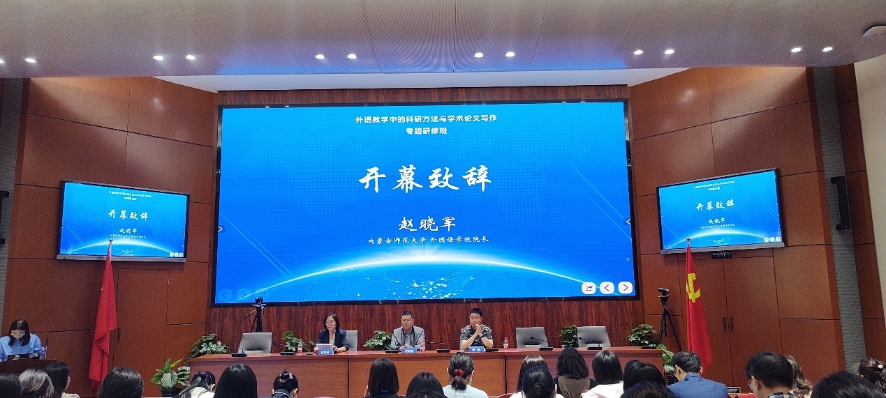 开班仪式由外研在线王月老师主持。ac米兰官网中文网站院长赵晓军教授致辞,对莅临指导本次研修的各位专家表示衷心感谢,并对参加本次研修的全体学员表示欢迎。