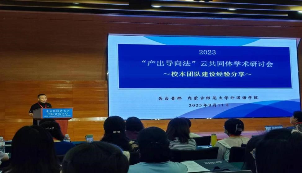 米兰官网英语系吴白音那教授与张婷博士代表团队参加了此次会议。作为“产出导向法”云共同体(一期)的优秀学员、英语系“产出导向法”教师专业学习共同体的牵头专家,吴白音那教授在主会场发言环节就米兰官网“产出导向法”共同体团队的建设过程、建设成效、建设经验以及发展规划做口头报告。张婷老师在讨论环节与在场的专家和外语教育同仁进行了积极的交流。