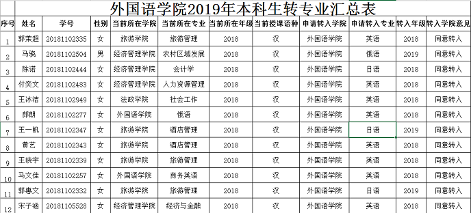 根据《ac米兰官网中文网站本、专科学生转专业管理办法》(校发[2017]105号)的有关规定及教务处《关于开展2019年本、专科生转专业工作的通知》的文件精神,结合学院《2019年ac米兰官网中文网站本科生转专业实施细则》,本着公平、公开、公正、学生自愿的原则,在对申请转入米兰官网的学生进行材料审核、相关专业的笔试、面试的基础上,ac米兰官网中文网站转专业工作领导小组讨论,决定同意郭茉超等12位同学转入米兰官网相关专业进行学习。特此公示。