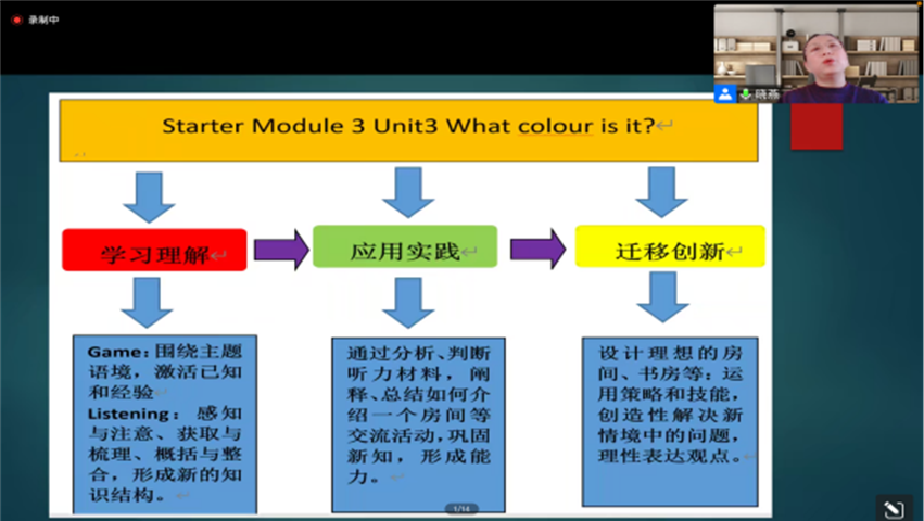 2022年10月20日下午,赤峰市教育教学研究中心英语教研员任雪艳老师做了题为《基于主题语境下的单元整体教学》的线上讲座,副院长那日苏主持讲座,英语系教师教育团队全体教师,2019级、2020级全体本科生以及部分研究生参加。