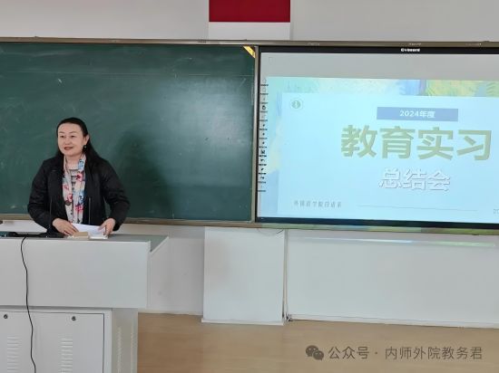 塔娜作为校内指导老师代表从专业实习和班主任实习两方面点评了2021级日语专业学生实习情况,充分肯定了实习生的教学能力、专业知识和班主任工作方法,强调了教育实习能够增强交流沟通能力这一意义,并且寄语同学们继续努力,让实习经历成为今后人生道路上的宝贵财富。