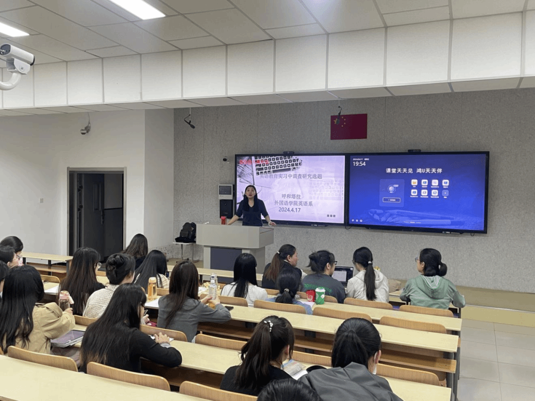 4月17日晚7点,米兰官网英语系在盛乐校区行知楼举办“师范生雏鹰教师训练营——研学营(二)”讲座。本次讲座由呼和塔拉副教授主讲,英语系2021级师范生参加了本次讲座。