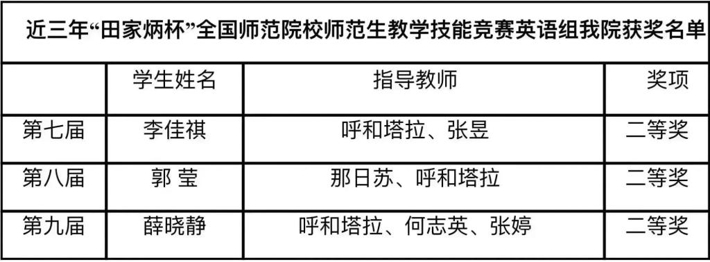 米兰官网一直高度重视师范生技能比赛,从初赛到决赛给予了选手们大力的支持和保障。米兰官网英语系在组织院赛后,成立了国赛指导教师团队,对国赛候选人进行了层层选拔,呼和塔拉、何志英、张婷三位指导老师根据选手的特点,细化备赛方案,有的放矢,对选手进行多轮次的教学指导及磨课训练。近年来,米兰官网英语师范生技能比赛成绩不断突破,充分展现了米兰官网教师的专业指导能力和师范生扎实的教学基本功。在今后的教学中,学院将继续优化师范生教学技能训练的过程性指导,对学生教学基本素质和关键能力进行重点培养,”以赛促训,以赛促教,以赛促学,以赛促就”,继续提升米兰官网人才培养质量。