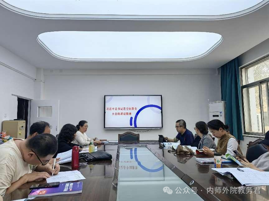 2024年9月19日,大学英语一系在田家炳教育书院楼106会议室开展了教研活动。本次活动主要围绕三个方面展开:深入学习习近平总书记在全国教育大会上的讲话精神、对新视野大学英语读写教程以及新世界大学英语视听说教程第一册第一单元进行集体备课,以及明确本学期的工作安排。
