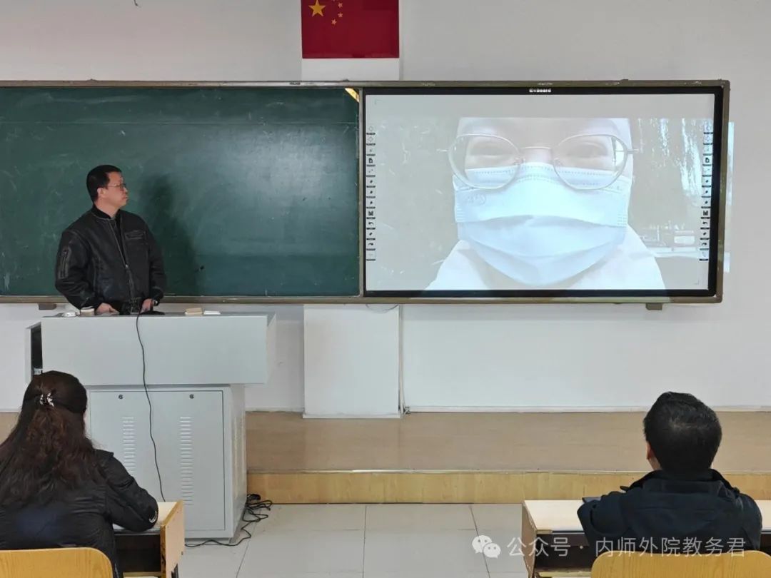 实习基地教师代表、巴彦淖尔市田家炳外国语学校于振洋老师通过视频参与了此次教育实习总结大会,并对2021级实习生在巴彦淖尔市田家炳外国语学校的实习情况表示了高度肯定,介绍了巴彦淖尔市田家炳外国语学校的基本情况,并表示欢迎新一届同学前来实习。