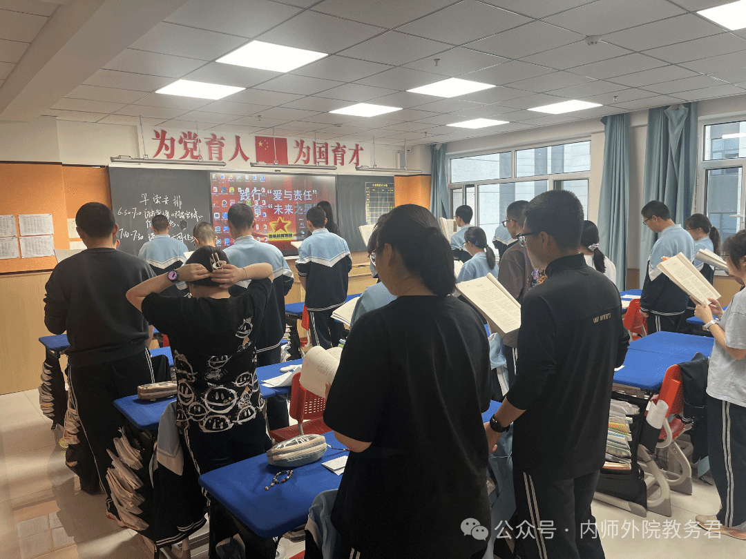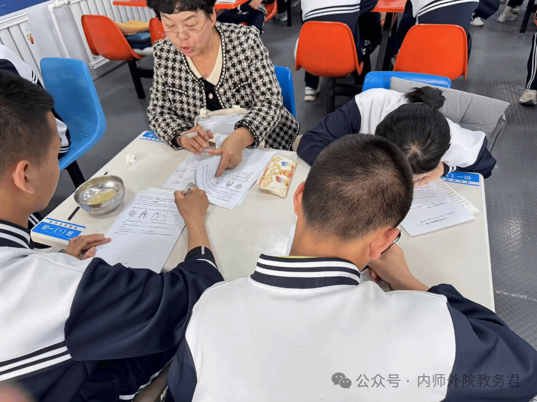 让呼和浩特市国星中学的实习生们印象深刻的是,本应在食堂用餐的庞老师放弃了自己的休息时间,在学生们用餐完毕后,利用午休间隙给学生讲题。她耐心且专注,用幽默的语言化繁为简剖析知识点,学生们围坐四周,眼神从迷茫变得清澈。这一幕深深烙印在实习生心里,他们真切感受到教育者的无私奉献与高度责任感。他们也因此暗下决心,要以庞老师为榜样,努力成长,将来也成为像她一样认真负责、照亮学生前行之路的好老师。