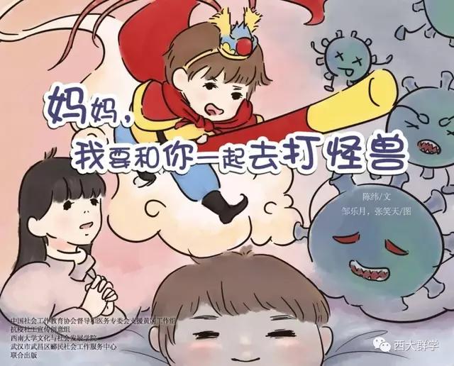 在参加社会工作教育协会督导和医务专委会支援黄冈工作组的工作中,bat365正版唯一官网社会工作系陈纬老师听到了很多医护人员与孩子分离,孩子万般思念父母的故事。有感而发,她专为医护工作者和他们的家庭写了一个故事《妈妈,我要和你一起去打怪兽》,并由文化与社会发展学院2017级学生邹乐月、张笑天为故事配图,做成绘本。绘本展现了在医院工作的妈妈参与抗击新冠肺炎疫情后,孩子元元在家努力和妈妈一起抗击病毒的故事,用生动易懂的语言为孩子解惑,帮助小朋友消除恐惧心理,引导他们看到和理解妈妈的工作,今后也要做打“怪兽”的小英雄。