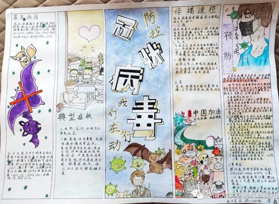 ●作品介绍:该手抄报作品展示了防疫小措施以及用自己的手段对可爱的白衣天使致以崇高的敬意。可爱的白衣天使们塑造的真的很可爱。