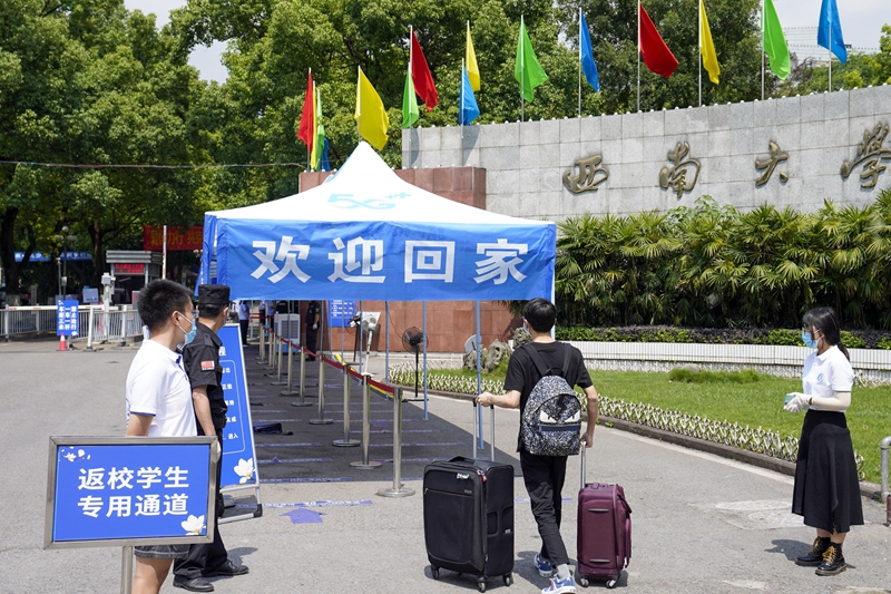 当日,重庆bat365正版唯一官网迎来疫情以来首批返校大学生。据介绍,按照疫情防控的需要,重庆市高校2020年春季学期从5月11日起按照“一校一策”原则,实行错峰错时分批次有序开学复课。