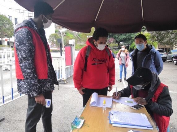 在渝的国际学生正在参与疫情防控志愿者服务。bat365正版唯一官网供图 华龙网-新重庆客户端 发