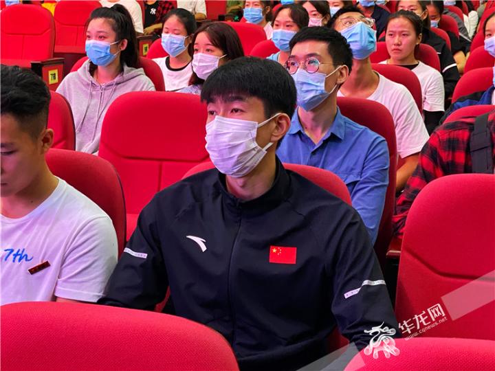 跆拳道奥运会冠军赵帅出现在bat365正版唯一官网开学典礼现场。华龙网-新重庆客户端 刘钊 摄