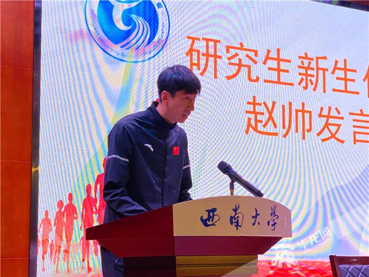 研究生新生代表赵帅上台发言。华龙网-新重庆客户端 刘钊 摄
