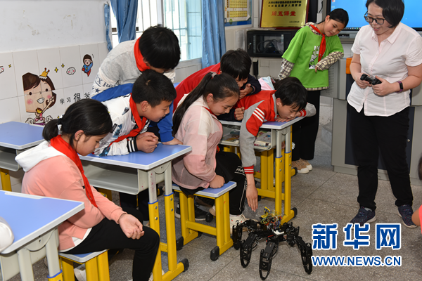 周五课堂——“神奇的机器人”。 新华网发(陈凌摄)
