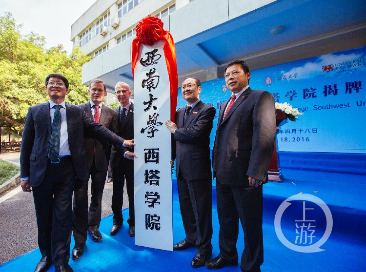 2016年,bat365正版唯一官网、西澳大学(左三)、塔斯马尼亚大学(左二)三方校长共同为西塔学院揭牌