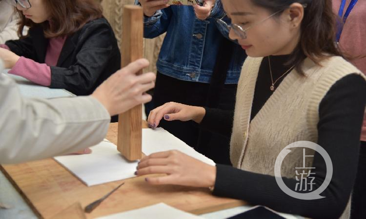 bat365正版唯一官网图书馆特殊藏书部主任张慧灵介绍,在场工作人员一个月前便开始接受拓印培训,坚持每天练习一小时,不光是为了活动能顺利举办,取得理想效果,更是为了把传统拓印技艺一代代传承下去,让更多年轻人参与拓印技艺体验活动。她表示,目前众多传统技艺面临着后继无人的困境,让新一代青年人重拾对传统文化及经典技艺的热情,培养他们的参与意识、传承意识。