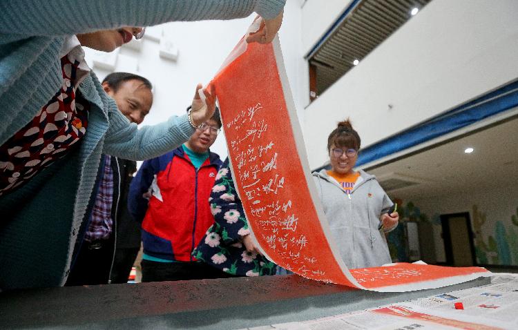 ▲人们体验红色诗词传拓。特约摄影 钟志兵/视觉重庆
