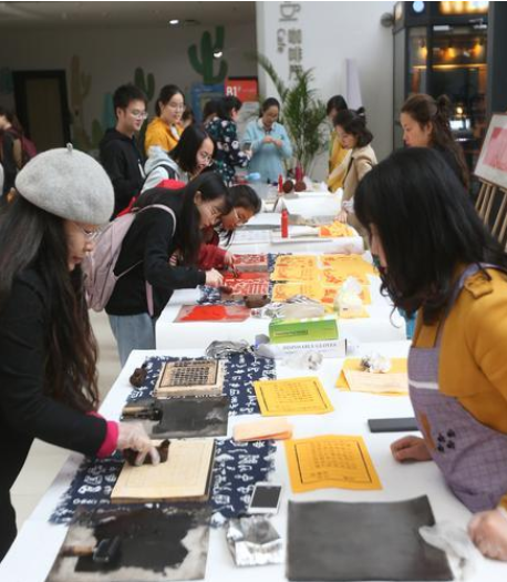 ▲人们体验雕版印刷。特约摄影 钟志兵/视觉重庆