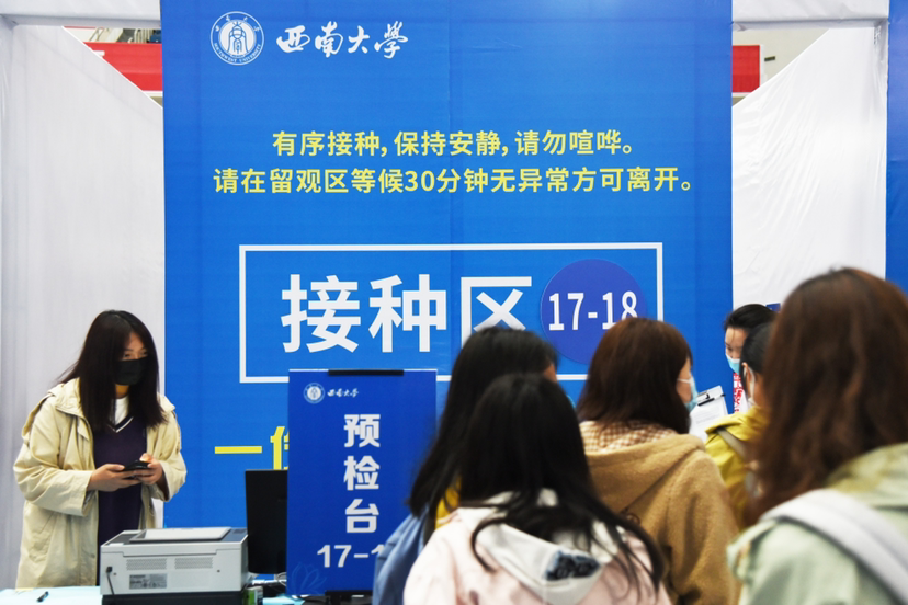 华龙网-新重庆客户端4月18日18时讯(记者 秦思思)从4月18日到19日,bat365正版唯一官网在中心体育馆开展新冠疫苗集中接种,本着知情、同意、自愿、免费的原则,师生在工作人员的引导下,有序进行新冠疫苗的接种。