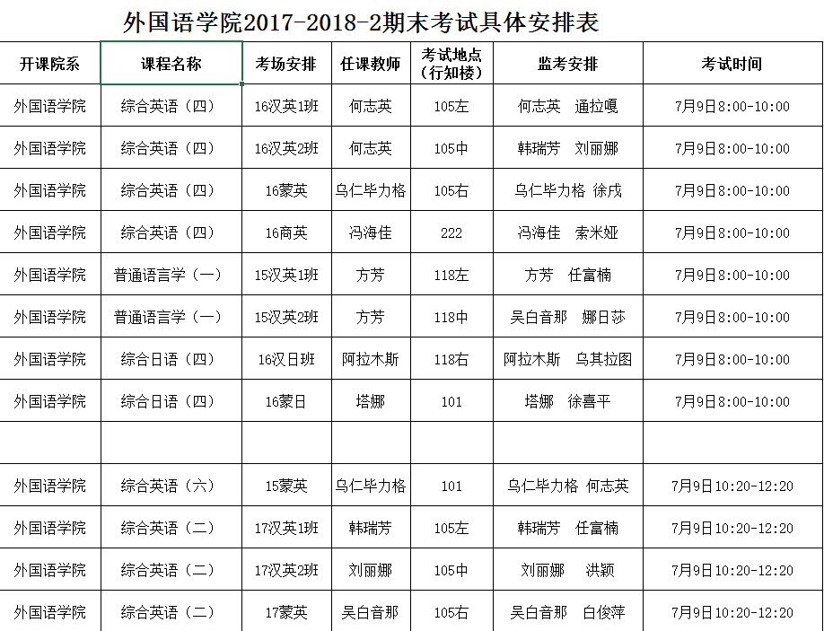 ac米兰官网中文网站2017-2018-2期末考试具体安排表