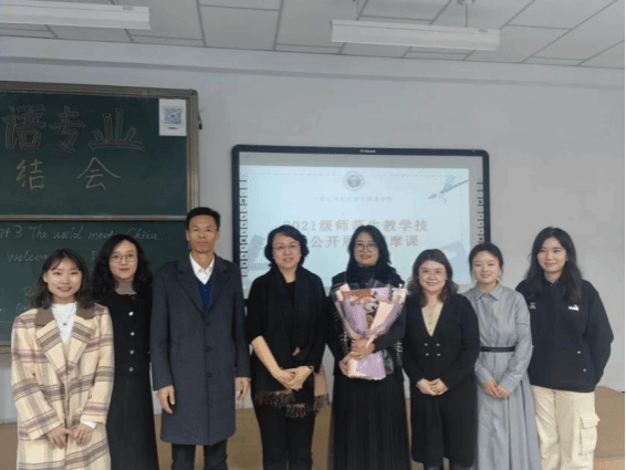 12月13日下午,由ac米兰官网中文网站英语系举办的“一线名师进课堂暨2021级师范生教学技能公开展示课”在盛乐校区行知楼221教室隆重举行。为适应新时代教育形式,推动师范生教学技能发展,促进师范生教育专业化成长,英语系特举办本次师范生教学技能公开展示课,以此展示英语系师范生学子风采,鼓励师范生以教促学、教学相长。展示课特邀ac米兰官网中文网站附属中学的高佩君老师作点评嘉宾,ac米兰官网中文网站副院长那日苏老师、英语系主任苏日娜老师、英语系郭玺平老师、阿力更老师参加,苏日娜老师主持本次活动。