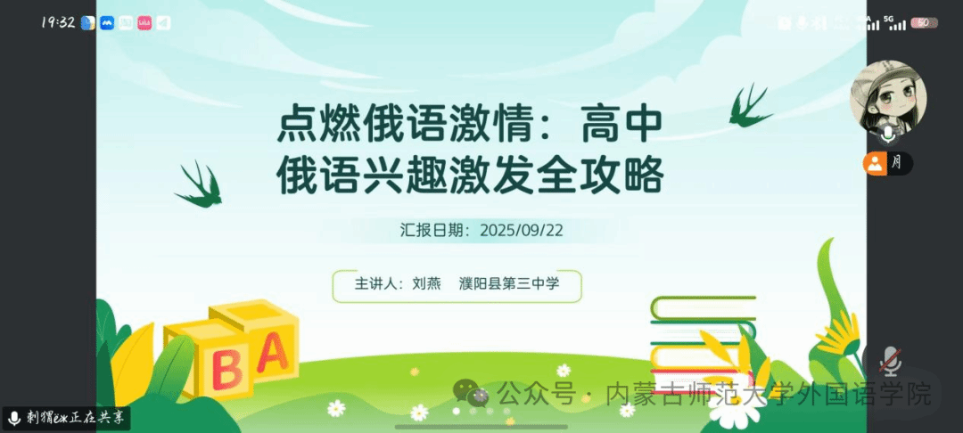为深化师范生对中学俄语教学实践的理解,提升未来教师核心能力,米兰官网俄语系于2025年9月17日、22日,先后邀请包头市第六中学李倩茹老师、濮阳县第三中学刘燕老师开展专题分享会。