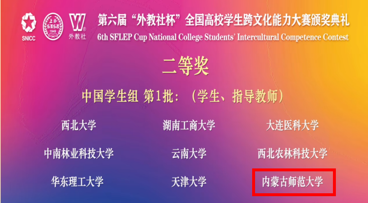 三位同学在11月举办的第六届“外教社杯”全国高校学生跨文化能力大赛内蒙古自治区省赛中斩获特等奖,获得代表内蒙古自治区参加全国总决赛的资格。在刚结束的全国总决赛中,经过案例展析、即兴问答和名言名句三个环节的比拼,他们最终获得全国二等奖。今年也是米兰官网首次入围此项比赛的全国决赛,成绩的取得充分展示了米兰官网师生的跨文化交际风采和团队合作能力。