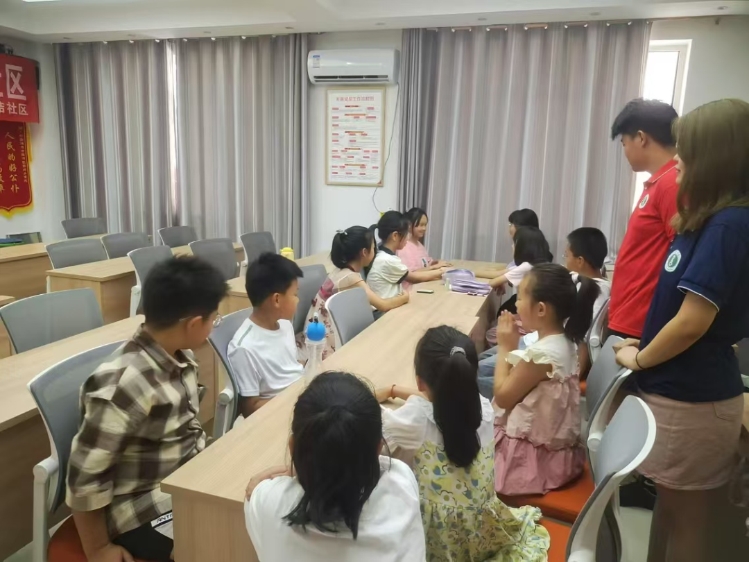在开班仪式结束后,志愿者们组织了破冰小游戏。志愿者们用亲切和蔼的态度、幽默亲和的氛围加速拉进了与孩子们的距离,为接下来的教学做准备。
