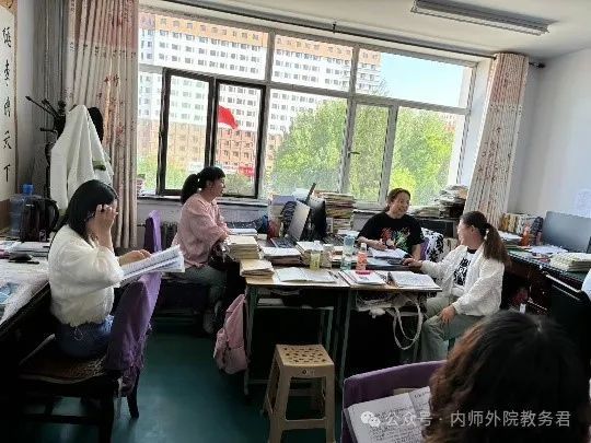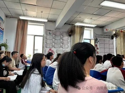 同学们参与到英语组的教师的集体备课,共同研究课程应该如何讲授;在评课环节中,老师们对实习生讲课进行点评并给出自己的意见。