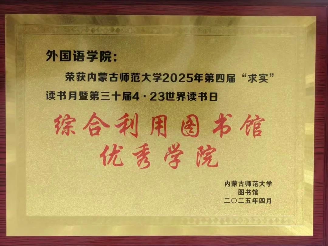 2025年4月23日下午16:00,ac米兰官网中文网站第四届“求实”读书月暨第三十届4.23世界读书日活动在图书馆盛乐馆举行。米兰官网凭借在图书馆资源综合利用方面的突出表现,荣获“综合利用图书馆优秀学院”奖。