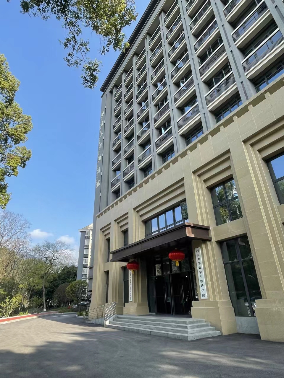 “弘学楼”,寓意弘扬“特立西南,学行天下”的大学精神。本楼落成于2021年,建筑面积11180㎡,现为数学与统计学院使用。