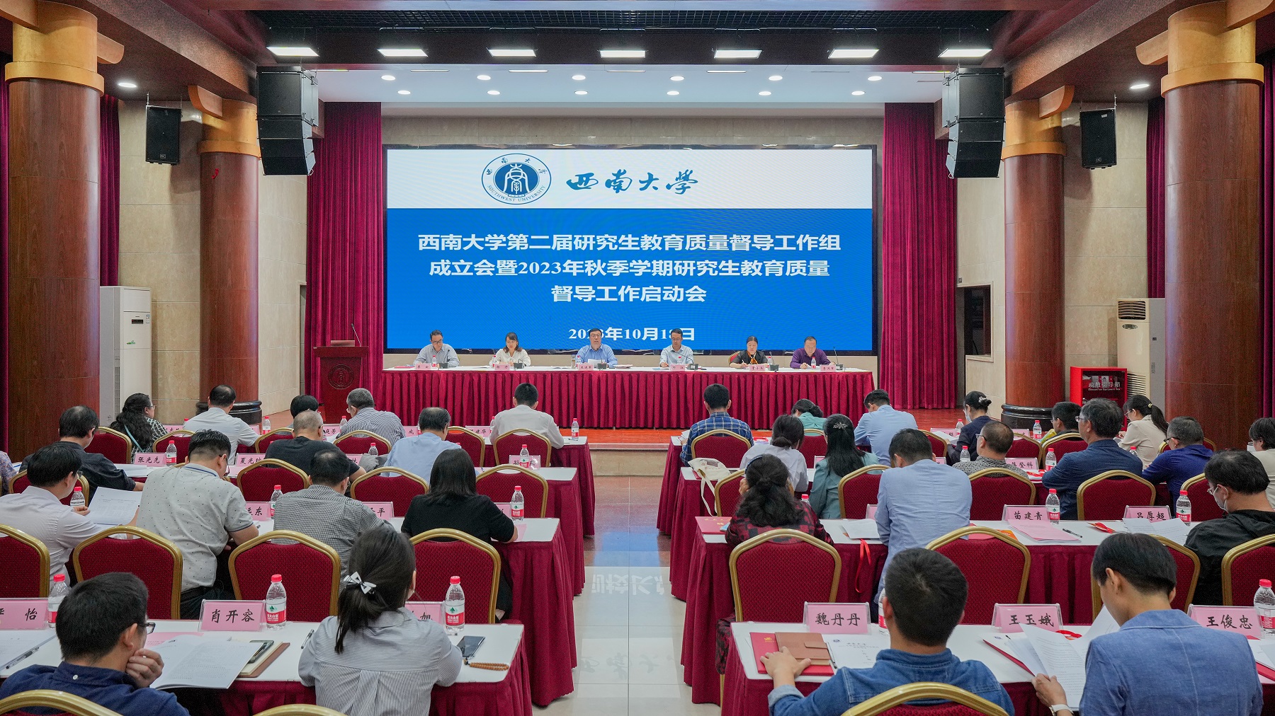为深入贯彻落实习近平总书记关于研究生教育的重要论述,落实学校研究生教育高质量发展行动计划(2021-2025),10月18日下午,学校在东方红会议厅组织召开bat365正版唯一官网第二届研究生教育质量督导工作组成立会暨2023年秋季学期研究生教育质量督导工作启动会。副校长王进军、各二级培养单位分管领导、第三届研究生教育指导专家委员会委员、第二届研究生教育质量督导工作组专家及研究生院相关工作人员参加会议。会议由研究生院院长邱江主持。