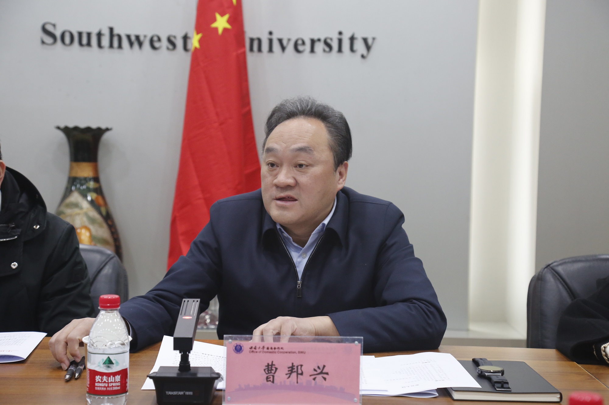 12月22日,巫山县委书记曹邦兴,县委常委、统战部部长刘海燕,县政府副县长乔澍一行来校推进县校合作。学校党委书记李旭锋出席座谈会,副校长葛信勇主持会议。