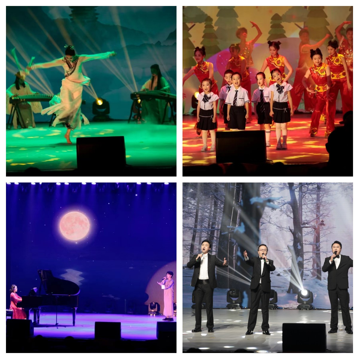 第一篇章“春行四季”由音乐学院、新闻传媒学院带来的舞蹈《春江花月夜》展开,曼妙的舞姿、婉转的琴声中流淌着春日独有的柔和与温暖;伴着耳熟能详的歌曲《太阳出来喜洋洋》,来自实验幼儿园的“阳光宝贝”和音乐学院的“阳光青年”舞出了明媚灿烂的夏日暖阳;“秋月高照”时的一首《思乡曲》,唱出了代代西大人最真挚的家国情与赤子心;重唱《我像一朵雪花天上来》歌颂着雪花对春天最坚贞的向往,在春、夏、秋、冬的流转变迁中,始终不变的是人们对春天的美好憧憬。