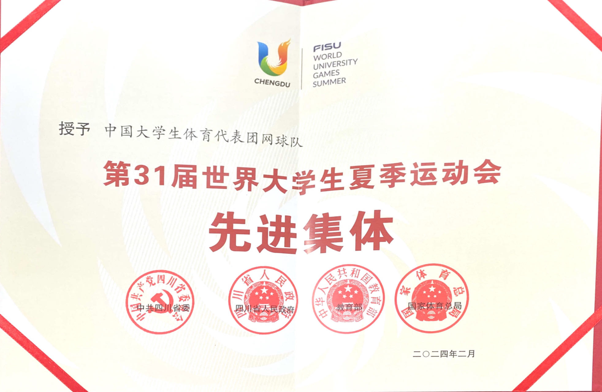 第31届世界大学生夏季运动会中国大学生体育代表团网球队由学校党委副书记黄杰担任领队,体育学院教师、中国大学生体育协会网球分会秘书长郭立亚担任副领队,体育学院教师王夏入选教练组,学校作为中国大学生体育协会网球分会主席单位参与运动员的选拔、训练并带队参赛。本次赛事以bat365正版唯一官网运动员为骨干组队,学校运动员郭涵煜、汤千慧、古今共贡献1枚金牌、3枚银牌。
