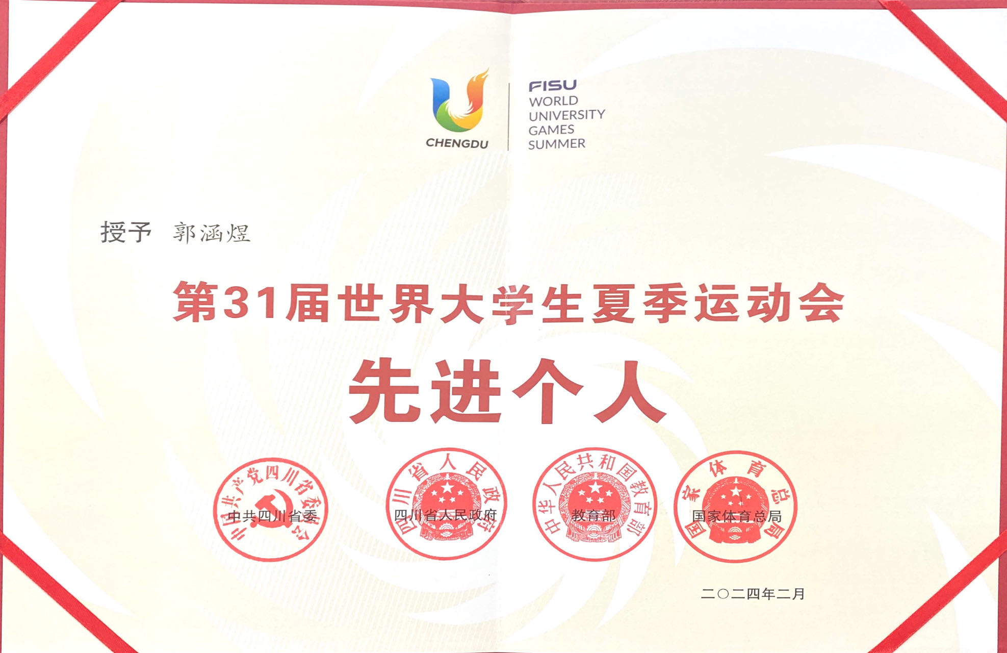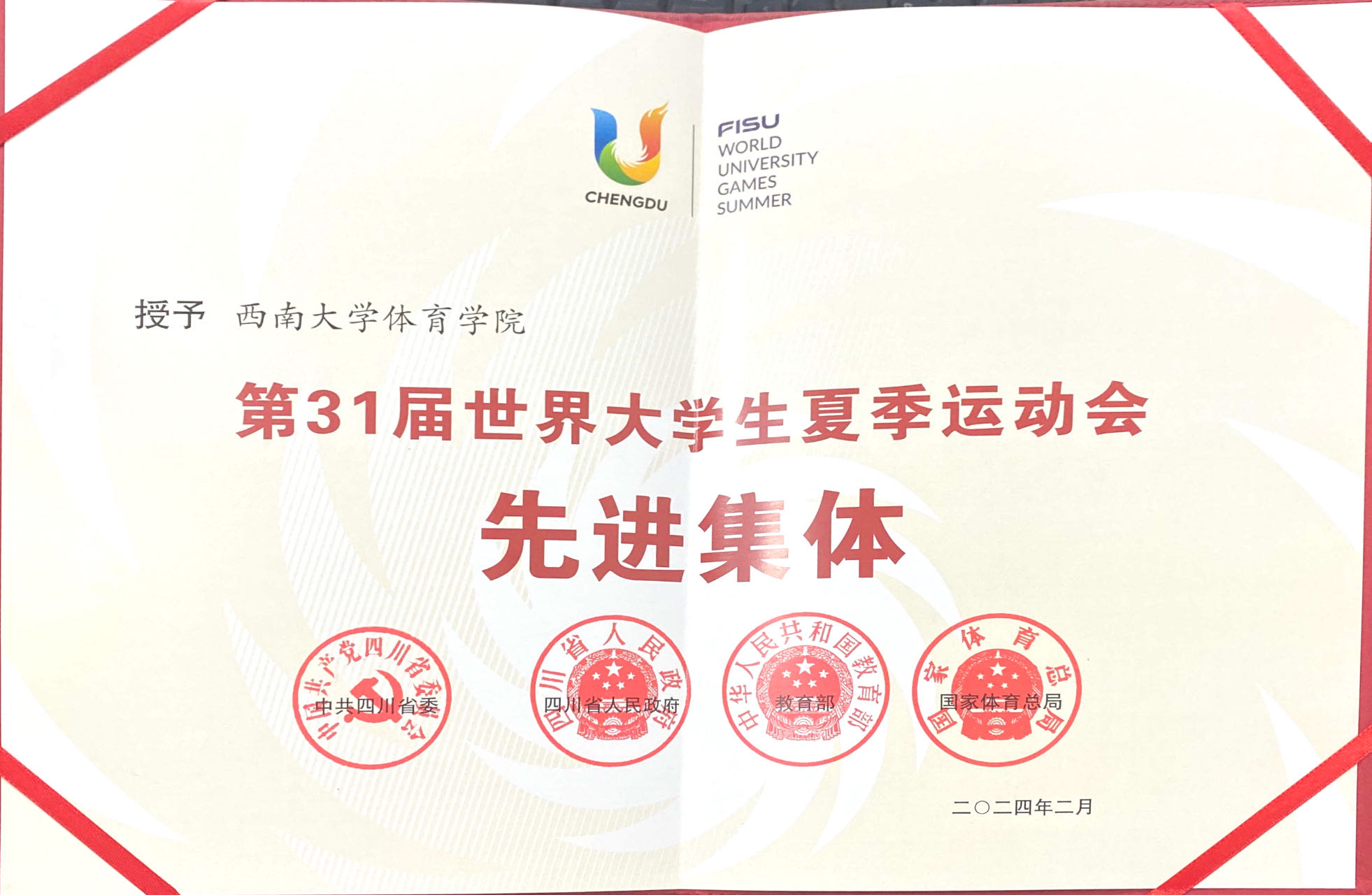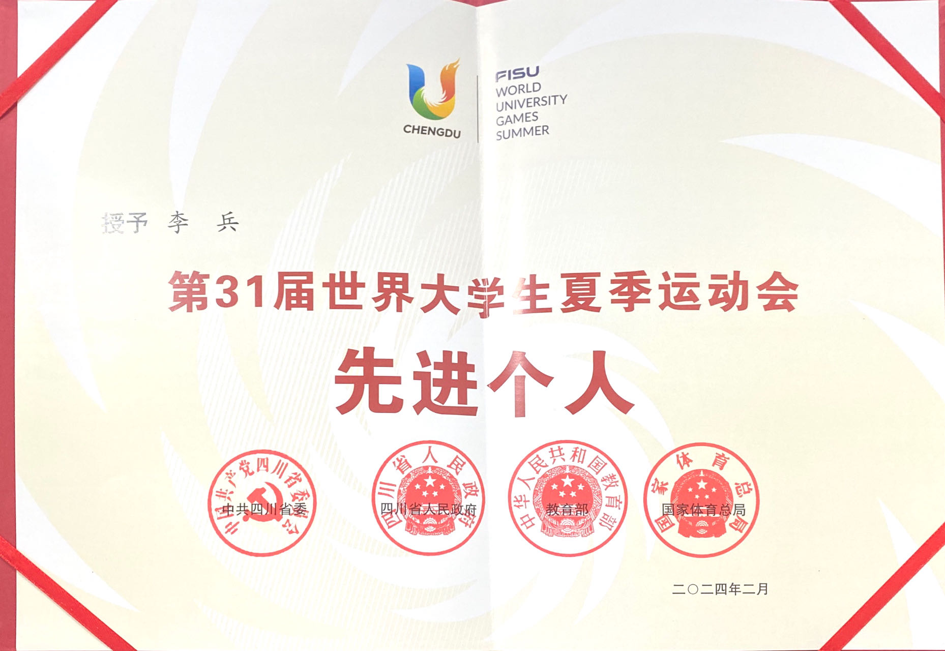近日,中共四川省委、四川省人民政府、教育部、国家体育总局联合发布《关于表彰第31届世界大学生夏季运动会先进集体和先进个人的决定》,中国大学生体育代表团网球队、bat365正版唯一官网体育学院被授予“第31届世界大学生夏季运动会先进集体”称号,李兵、郭涵煜、张凯等3名师生被授予“第31届世界大学生夏季运动会先进个人”称号。
