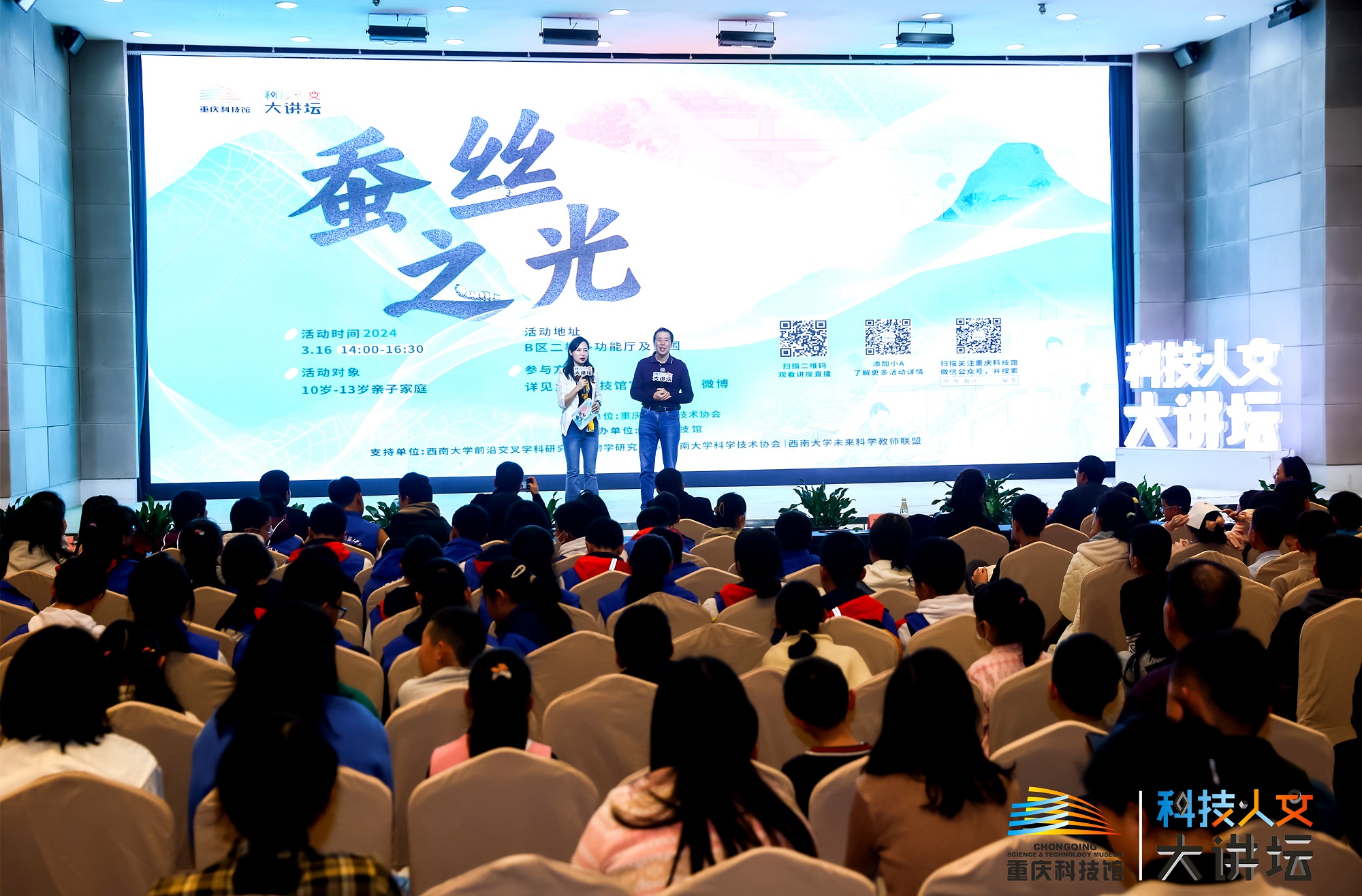 3月16日,由重庆科技馆主办,bat365正版唯一官网前沿交叉学科研究院生物学研究中心、bat365正版唯一官网科学技术协会、bat365正版唯一官网未来科学教师联盟协办的“蚕丝之光”科技·人文大讲坛主题活动在重庆科技馆举行。
