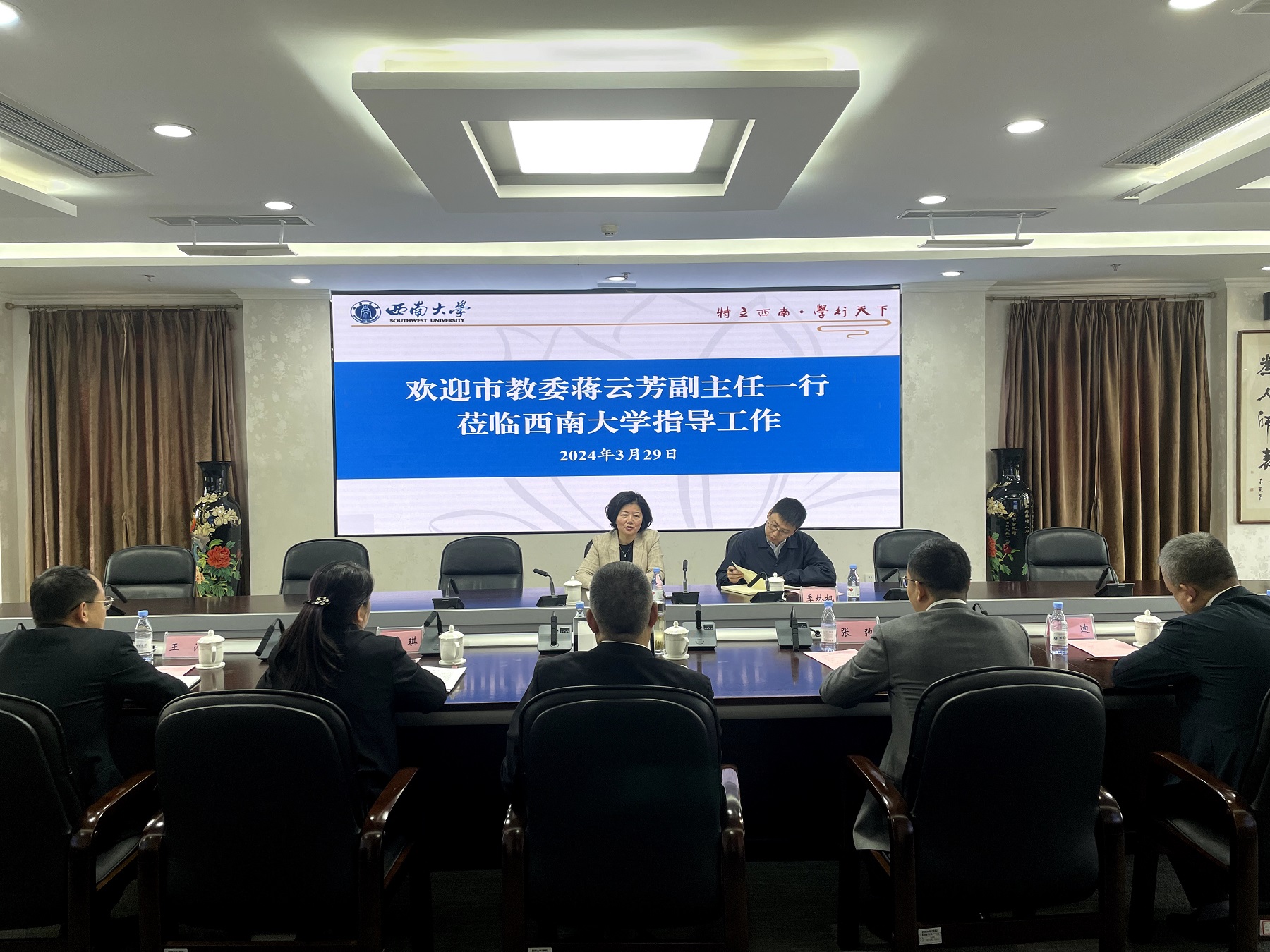 3月29日,重庆市教委副主任蒋云芳一行来校调研“双一流”建设工作。学校副校长葛信勇,发展规划与学科建设部 学术委员会办公室、研究生院相关负责人陪同调研。