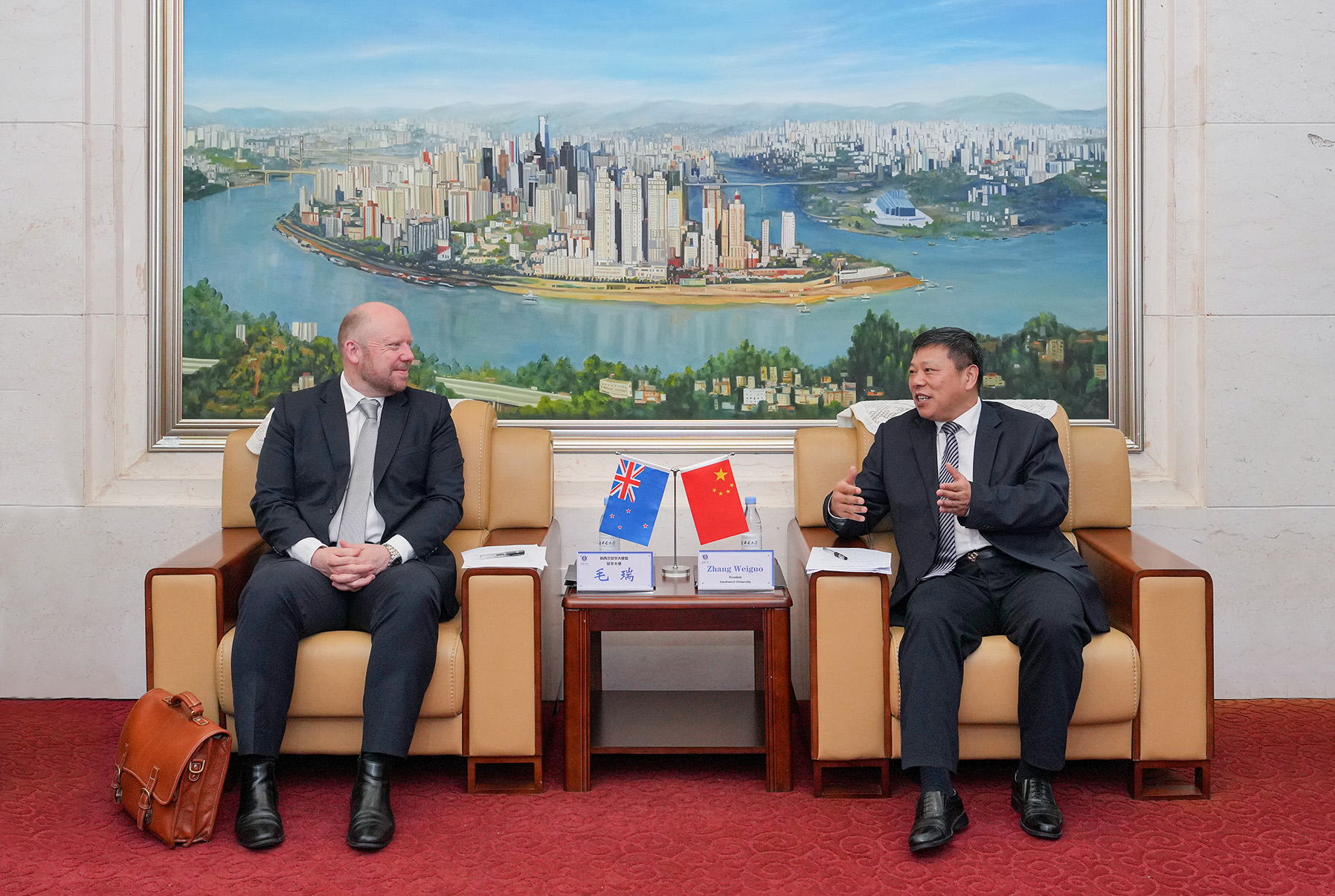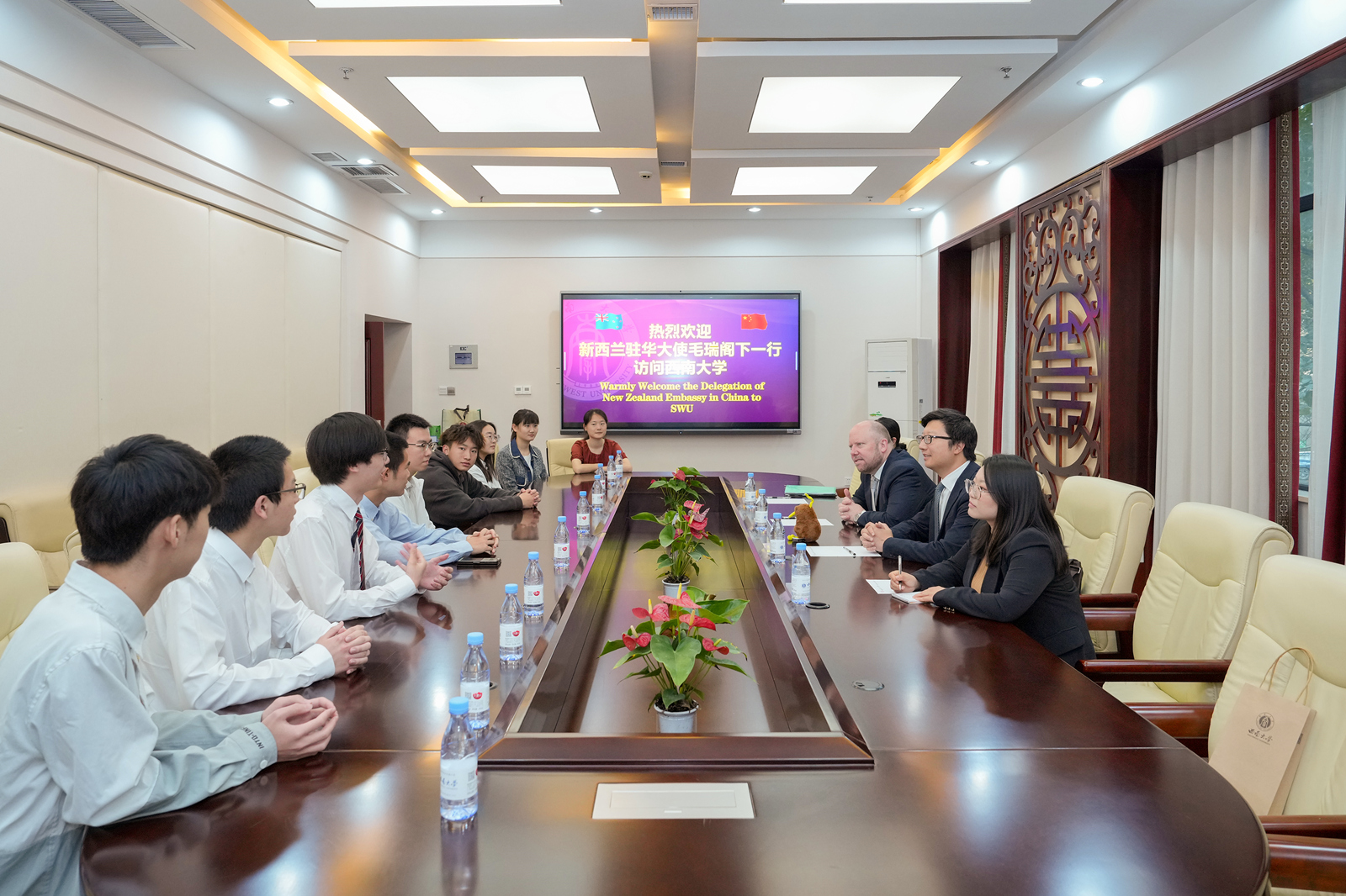 张卫国对毛瑞一行的来访表示热烈欢迎,简要介绍了bat365正版唯一官网及学校国际化的基本情况,回顾了学校与新西兰高校的合作情况。他表示,学校高度重视深化与新西兰高校的合作关系,希望以此次大使来访为契机,进一步拓展和深化学校与新西兰高校的合作,实现优势资源共享与互补,共同推动两国教育与科研事业蓬勃发展。