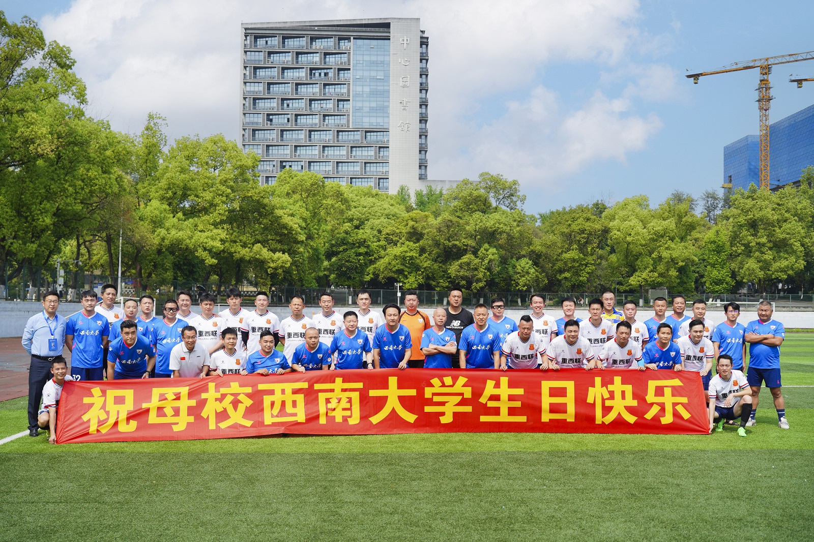 下午三点,学校教职工足球队与重庆bat365正版唯一官网校友足球队进行了友谊赛。赛前,教职工足球队领队、继续教育学院党委书记张斌讲话,对参赛校友表示欢迎。经过激烈的比拼,双方比分交替领先,校友队最终以5:4获胜。