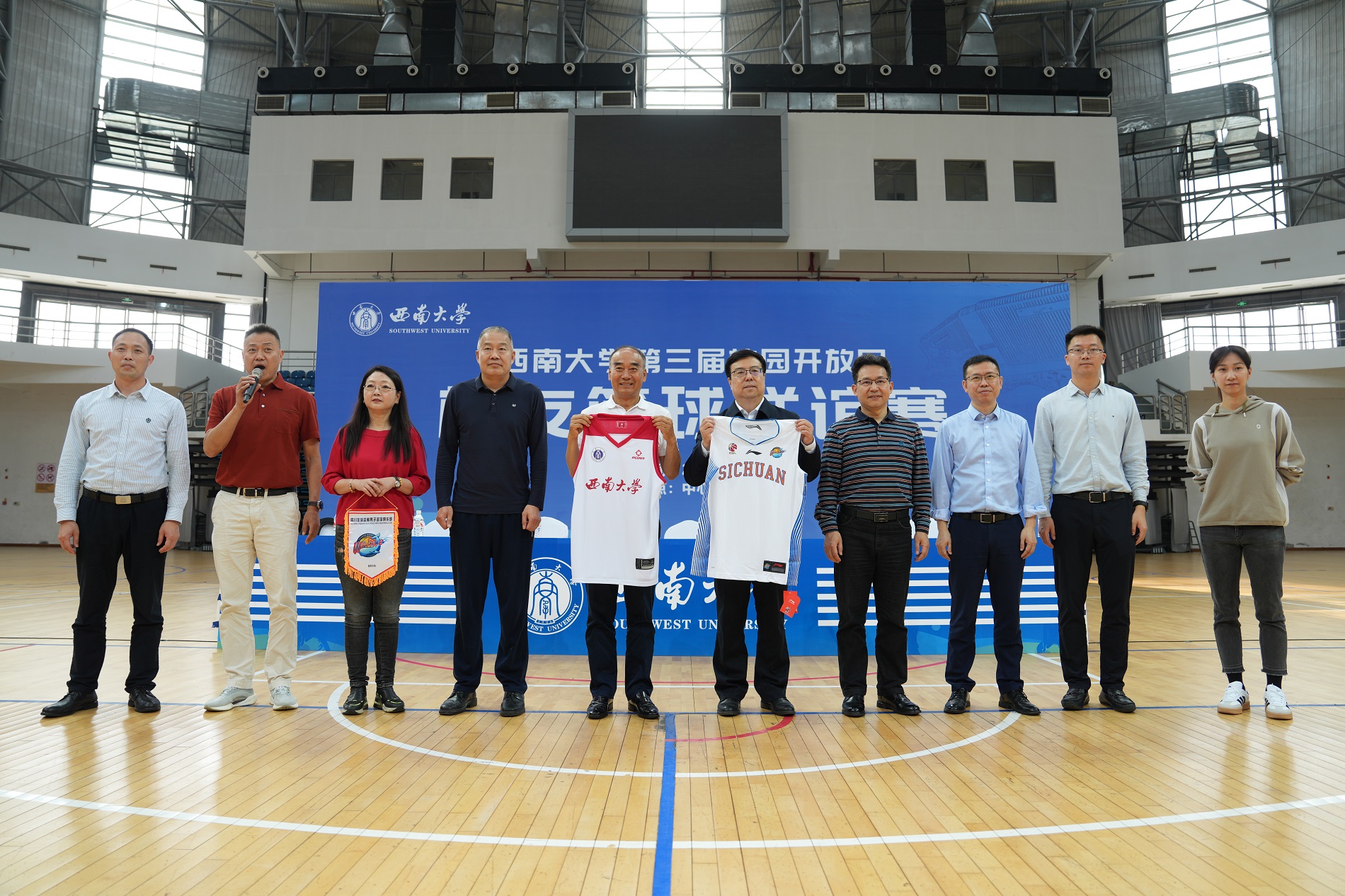 赛前,王进军在致辞中感谢金强俱乐部对校园开放日活动的支持,希望学校队员珍惜与高水平队伍的交流机会,提升自身水平。他与周仕强互赠球衣,并为比赛开球。