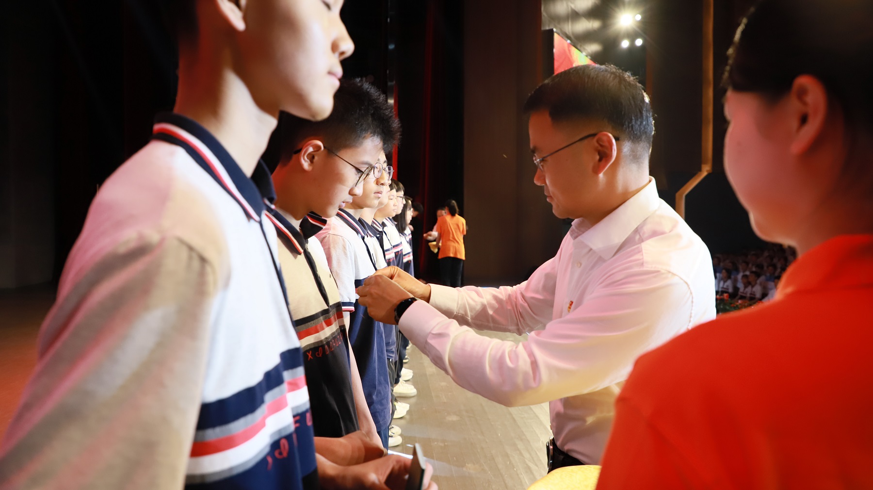 本次活动由团市委、市少工委主办,北碚区教委、团区委、区少工委、bat365正版唯一官网附属中学承办,是重庆市2024年“五四”离队入团示范活动。团市委副书记张珂、北碚区政府副区长李纲、学校副校长周光明出席活动,团市委相关部室、北碚区相关部门、学校团委、附属中学等单位相关负责人,附属中学团员代表及其他观摩学校师生代表共计1500余人参与活动。