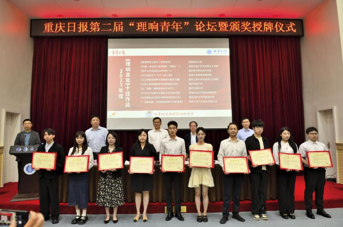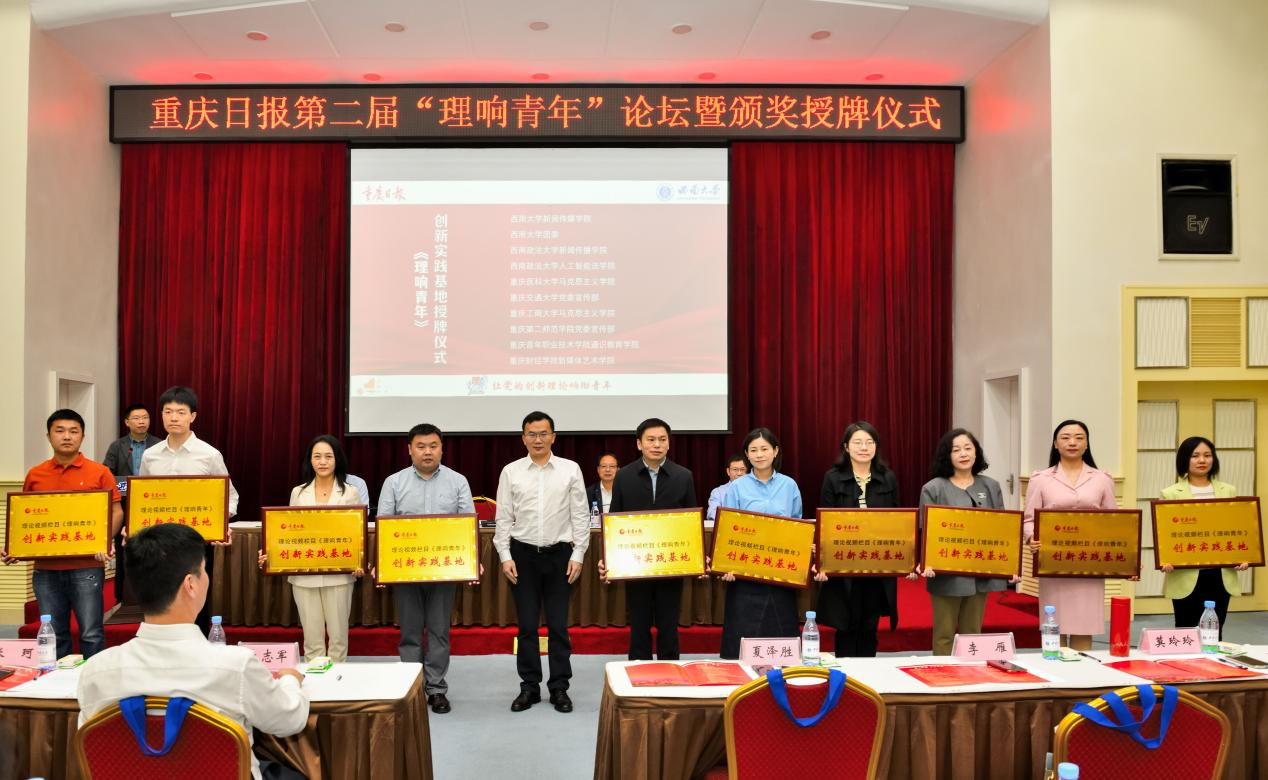 4月28日上午,由重庆日报报业集团、bat365正版唯一官网共同主办,学校党委宣传部、党委网络工作部,新闻传媒学院和重庆日报理论视频栏目《理响青年》共同承办的重庆日报第二届“理响青年”论坛暨颁奖授牌仪式在桂圆宾馆金桂厅举行。