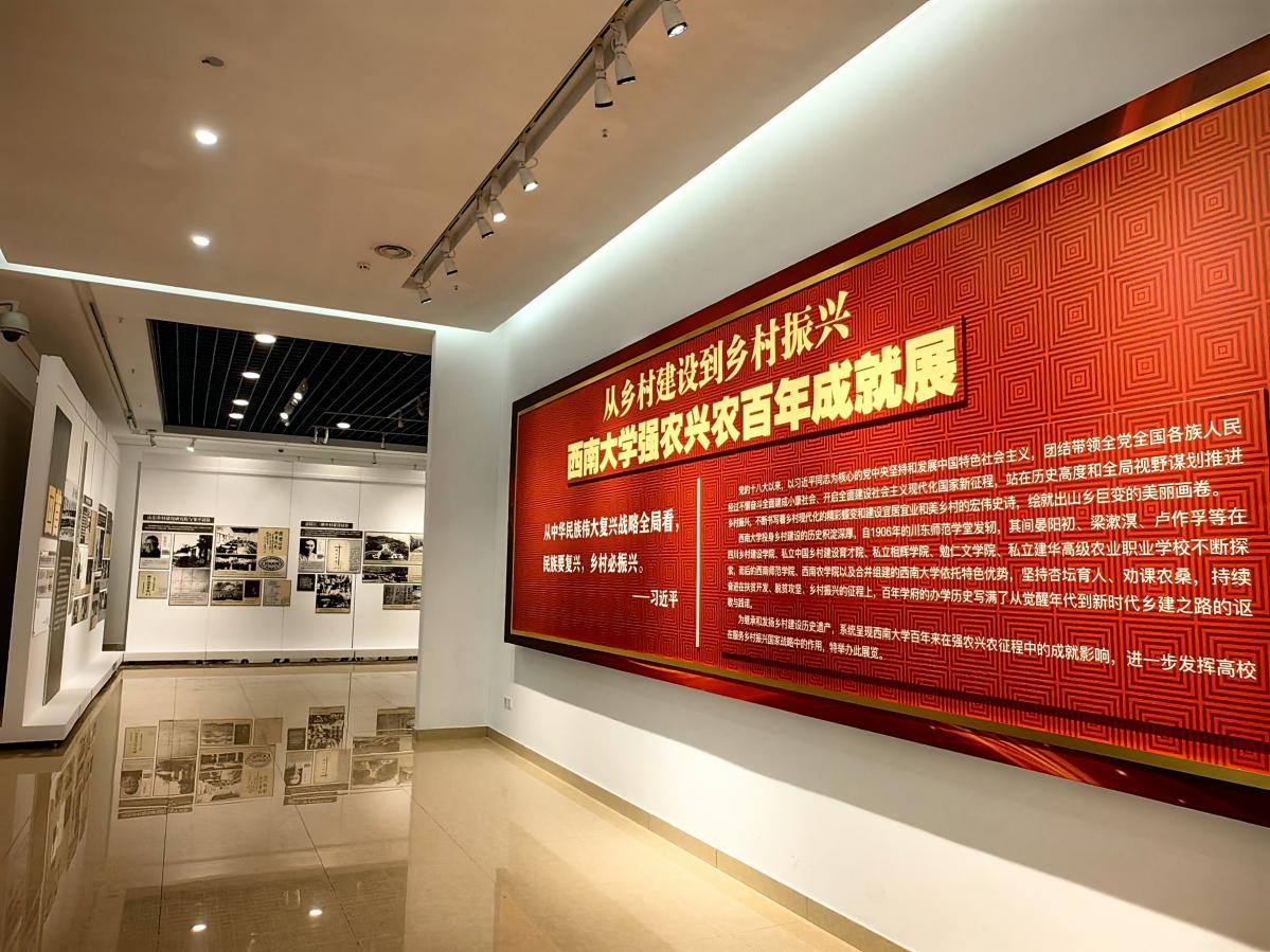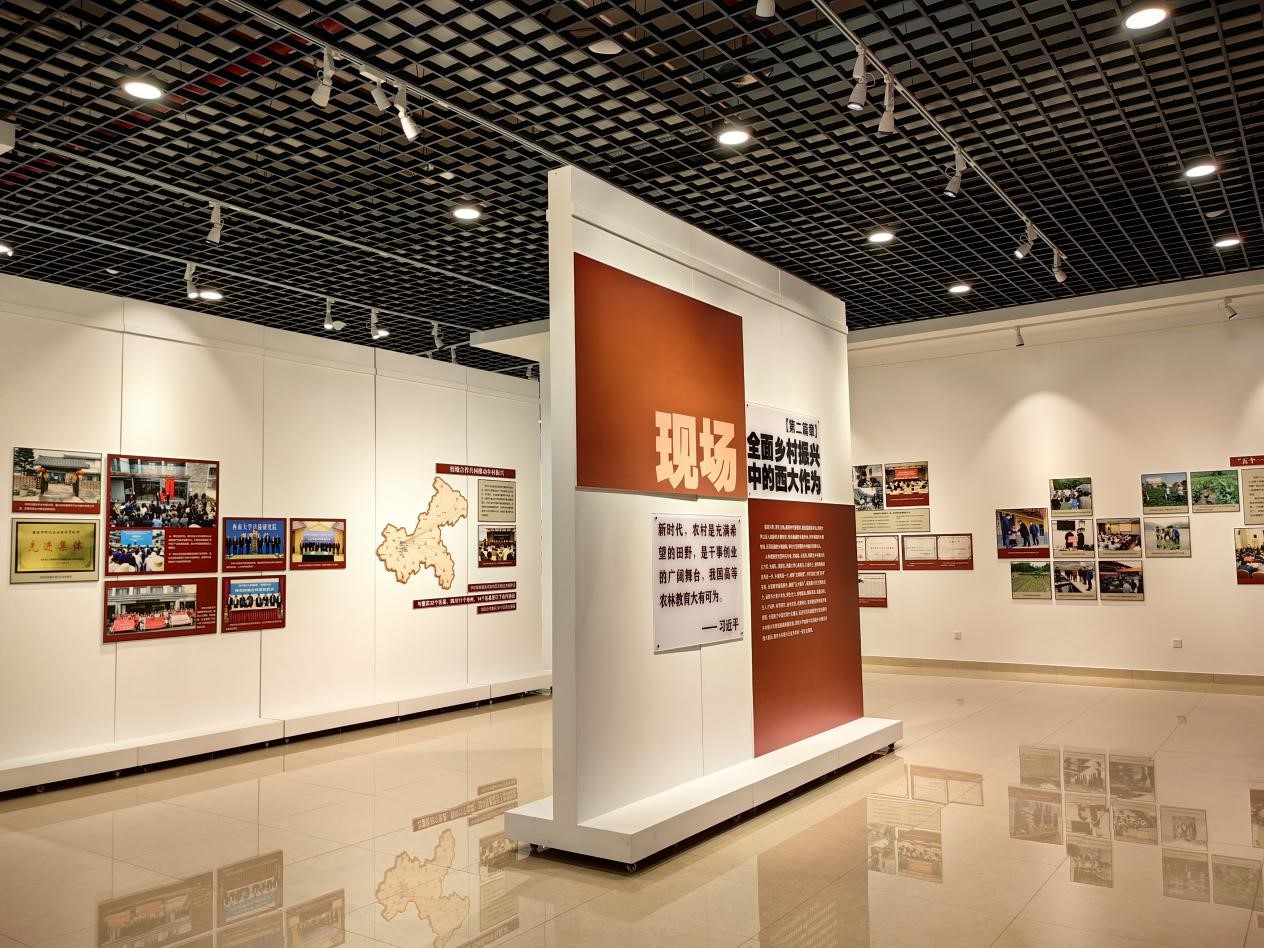 本次展览分为“回首:百年乡村建设中的西大身影”“现场:全面乡村振兴中的西大作为”“展望:农业强国建设中的西大担当”三个篇章,集中呈现了历史上的中国乡村建设试验、学校培养乡村建设人才的早期探索、新时代“五大振兴”中的西大贡献等内容,展示了学校通过科教扶贫、校地合作、人才培养、成果转化、智库建设和国际交流传播等途径助力乡村振兴的成果与作为。