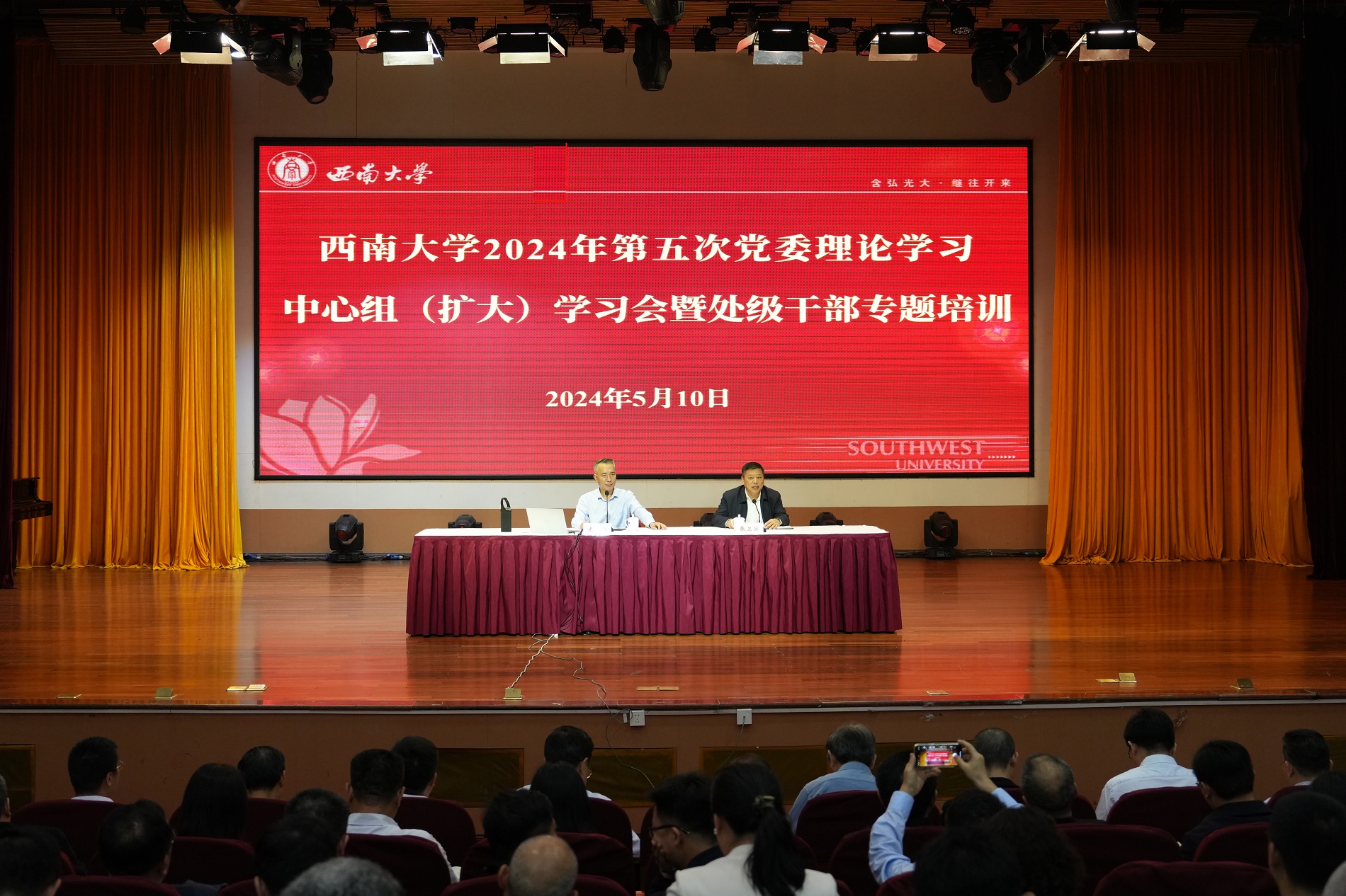 5月10日上午,学校召开2024年第五次党委理论学习中心组(扩大)学习会暨处级干部专题培训,全面推进党纪学习教育走深走实。学校党委书记张卫国主持会议。