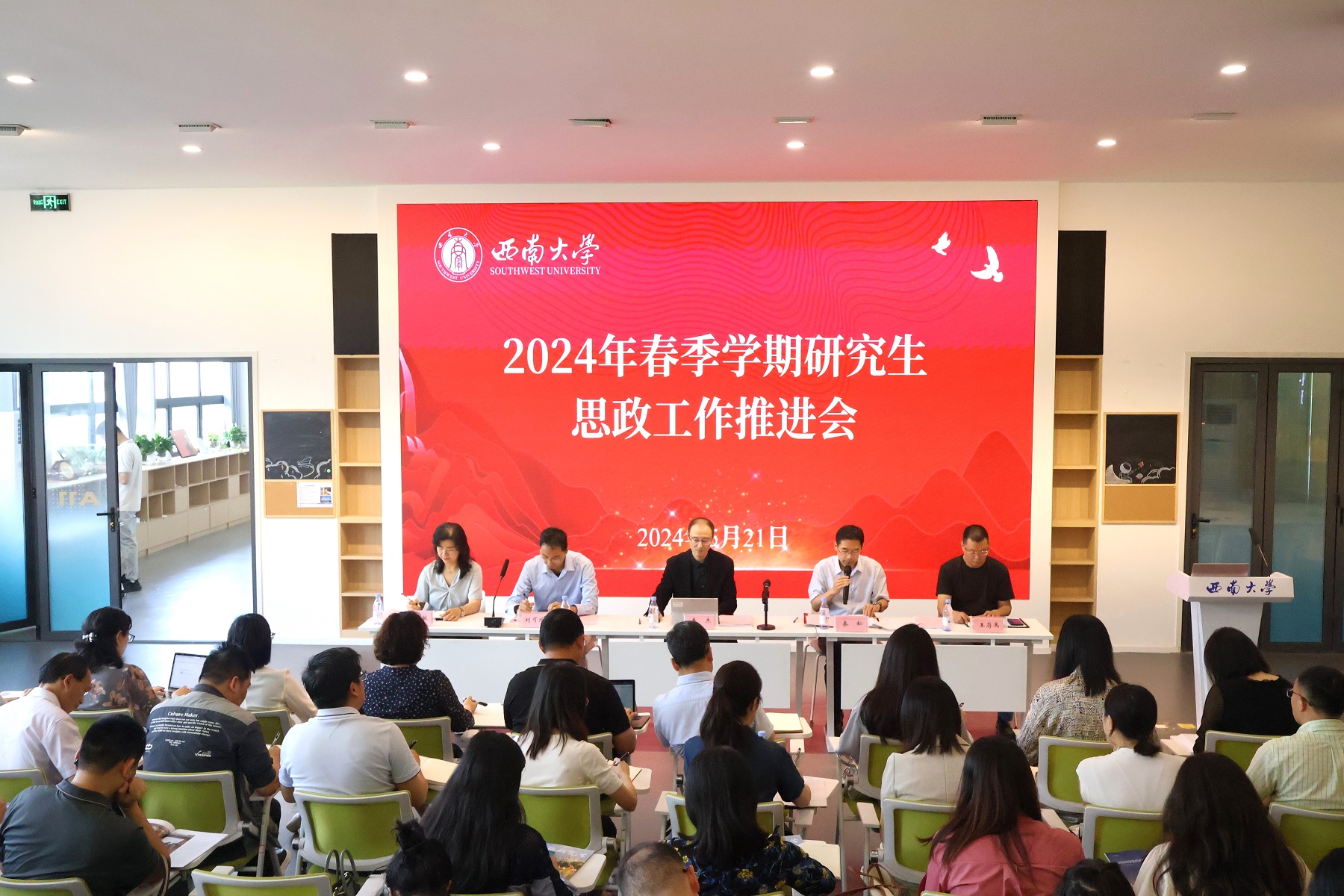 5月21日,学校在青李空间A11活动室召开春季学期研究生思政工作推进会。学校党委副书记黄杰出席会议,相关职能部门负责人及各培养单位分管研究生思政工作负责人、辅导员参会。会议由党委研究生工作部部长秦松主持。