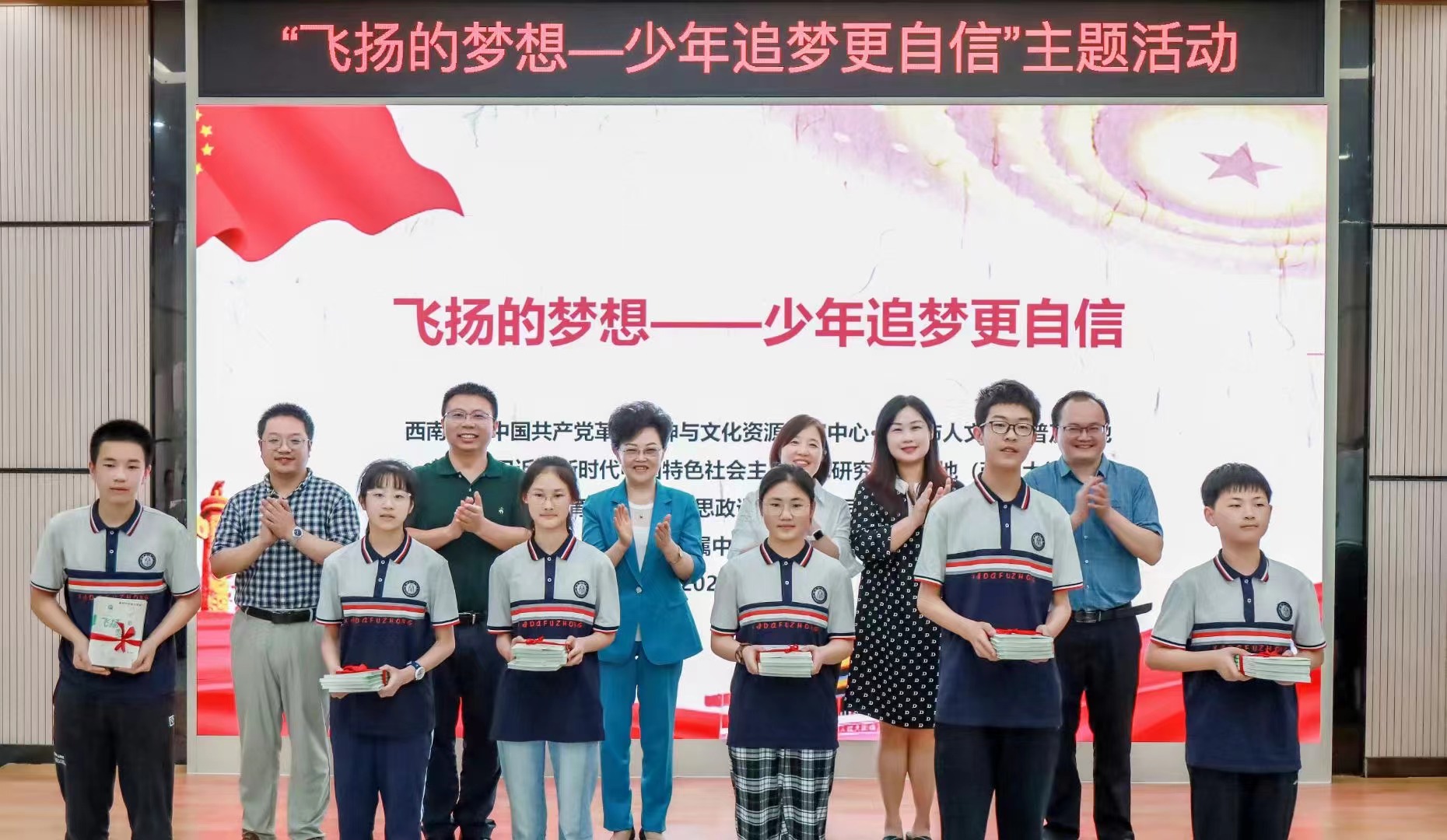 活动期间,师生们共同观看了专题短片《声动中国梦想未来》,主办方向同学们赠送图书《飞扬的梦想》。bat365正版唯一官网中国共产党革命精神与文化资源研究中心研究员张朝晖、教育部习近平新时代中国特色社会主义思想研究中心基地(bat365正版唯一官网)研究员方建、教育部大中小学思政课一体化共同体(重庆)研究员李苑玉分别进行宣讲,用真实的历史故事、生动的人物案例引导青少年们播下梦想的种子、插上追梦的翅膀,自觉用实际行动为中国梦的实现注入青春力量。附属中学学生代表李承朔以“今之少年,当以青春之我,逐民族之梦”为题发言,与同学们共勉共进。